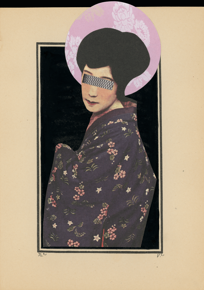 Tinta y collage sobre página de libro antiguo. 12 x 16,5 cm.