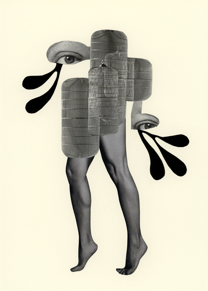 Collage y tinta sobre papel Moleskine. 16,5 x 23 cm.