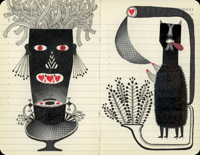 Ideas Pre-EVA Ideas. Collage y tinta sobre cuaderno Moleskine. 9 x 14 cm. ___ . . . . . . . . . . . . . . . . . .